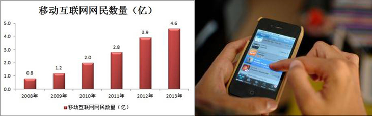 截止2013年6月,中国移动互联网网民数量达到4.6亿