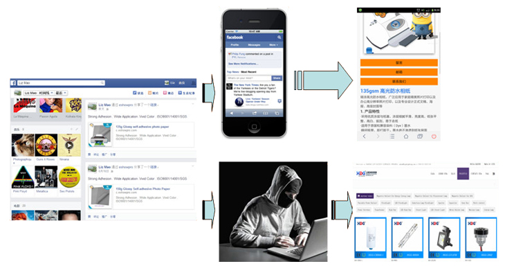 客户用手机浏览FACEBOOK,自动进入手机界面;PC浏览,自动进入网站界面。将社交媒体变成网站导流的工具!